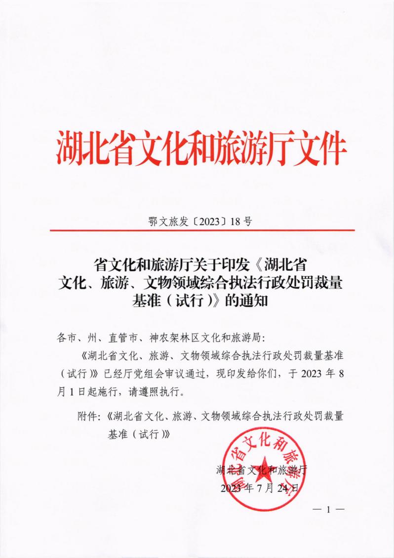 省文化和旅游厅关于印发《湖北省文化、旅游、文物领域综合执法行政处罚裁量基准(试行)》的通知