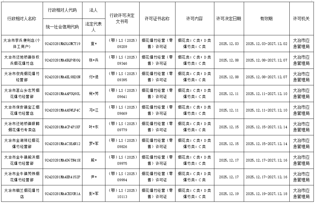 大冶市应急管理局2025年行政审批事项公示(十一)