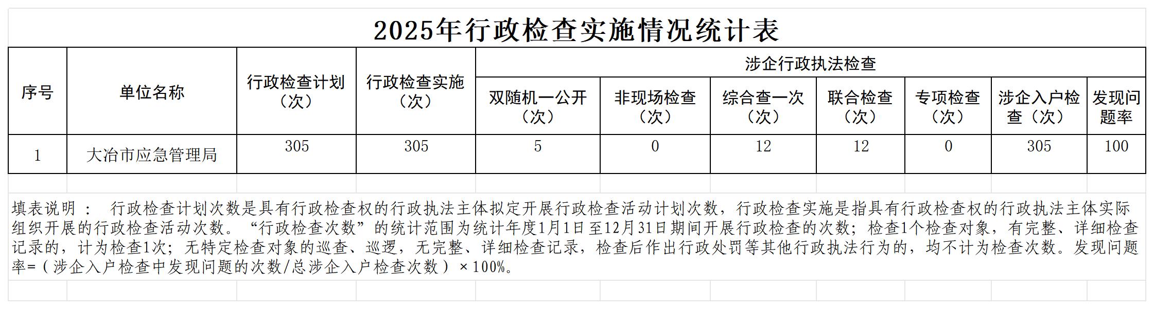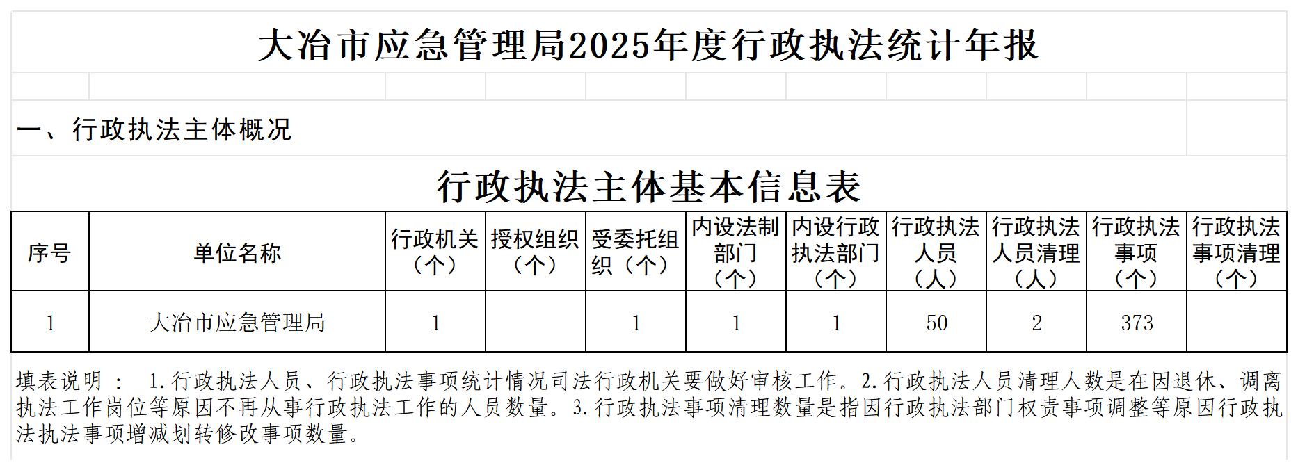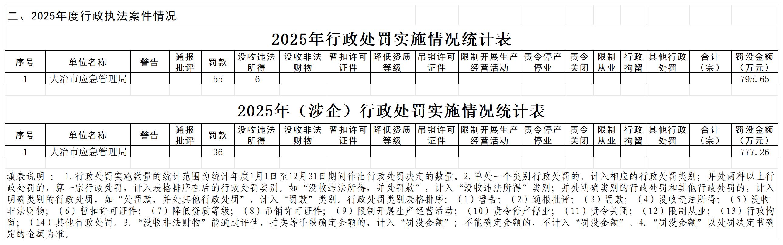 大冶市应急管理局2025年度行政执法统计年报