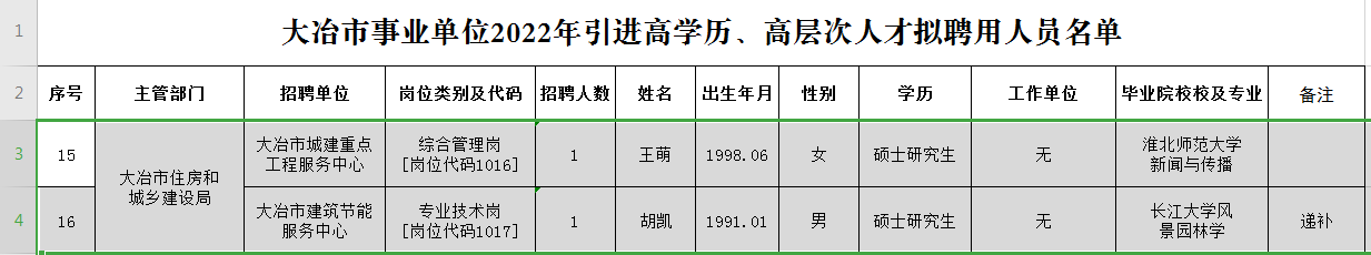 附件: 大冶市事业单位2022年引进高学历、高层次人才拟聘用人员名单.xlsx