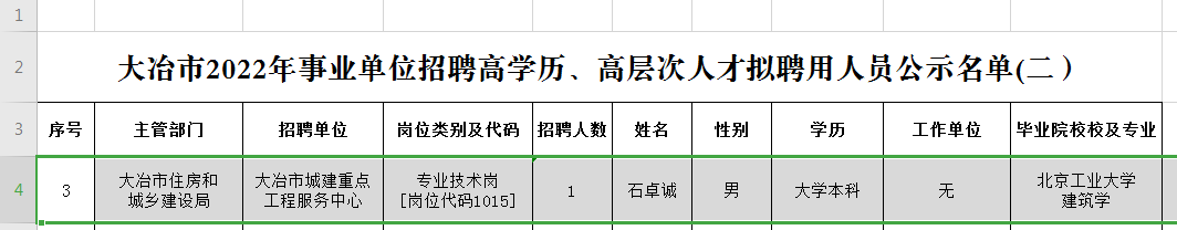 附件: 大冶市2022年事业单位招聘高学历、高层次人才拟聘用人员公示名单(二).xlsx