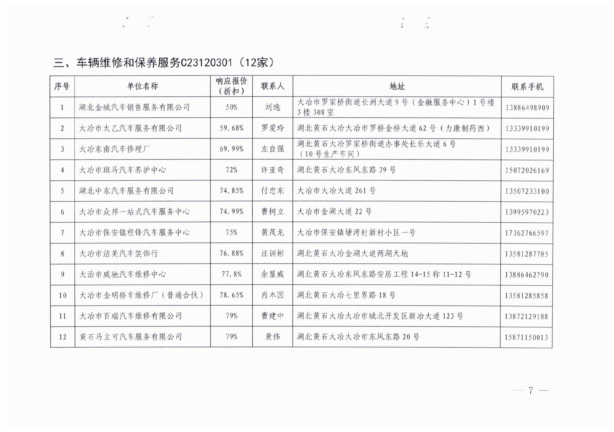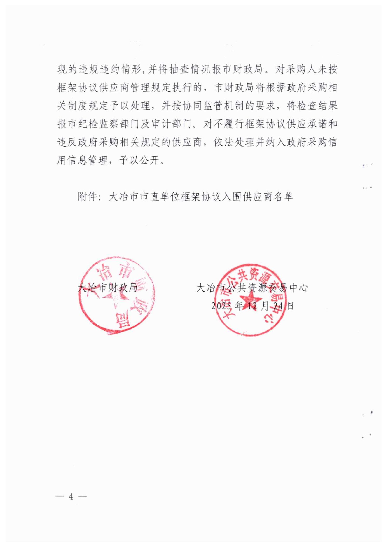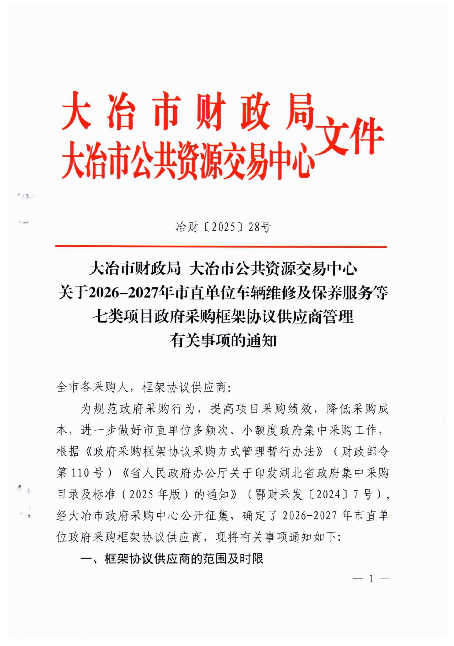 大冶市财政局 大冶市公共资源交易中心关于2026-2027年市直单位车辆维修及保养服务等七类项目政府采购框架协议供应商管理有关事项的通知冶财(2025)28号