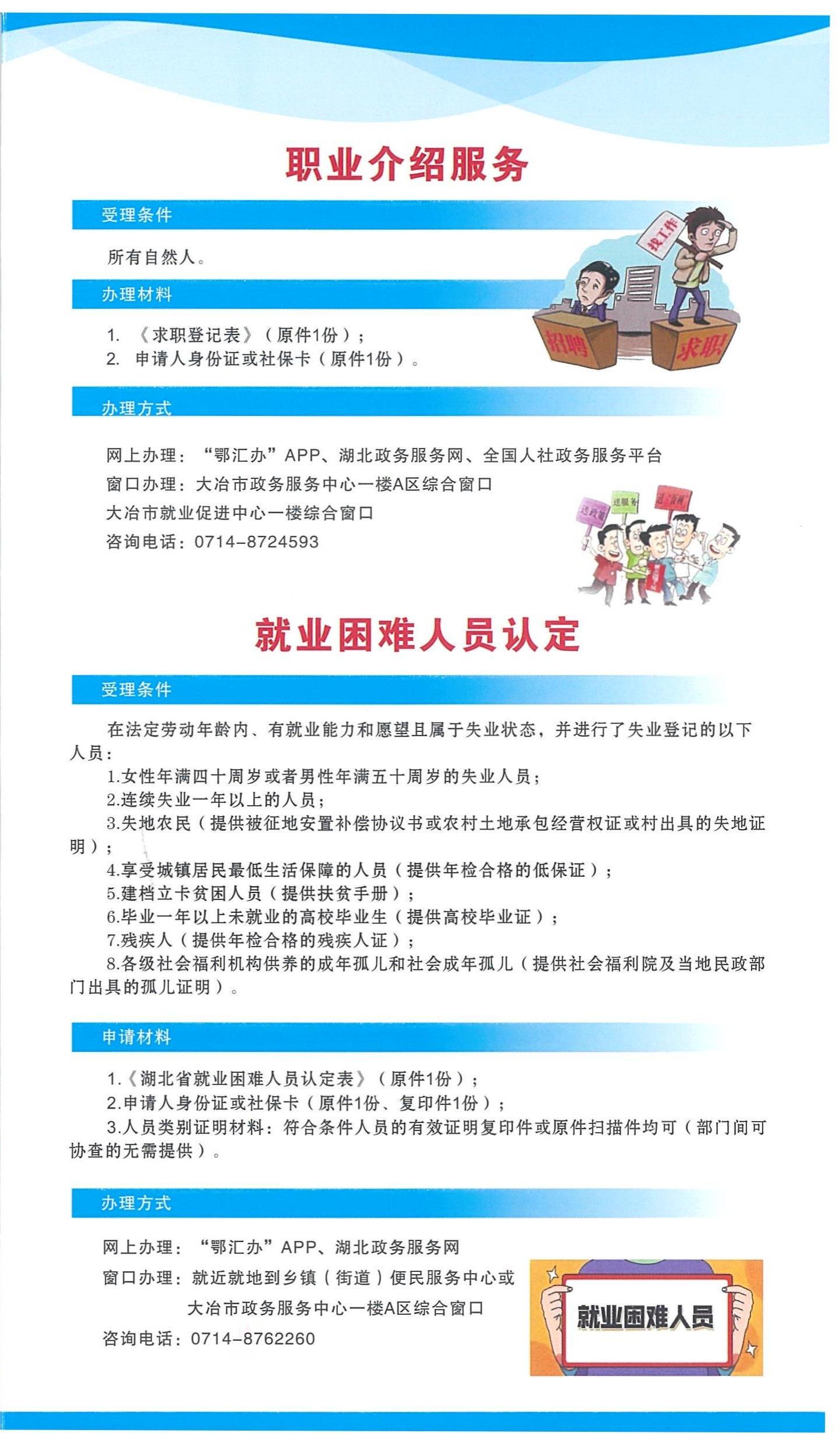 大冶市职业介绍服务、就业困难人员认定工作指南