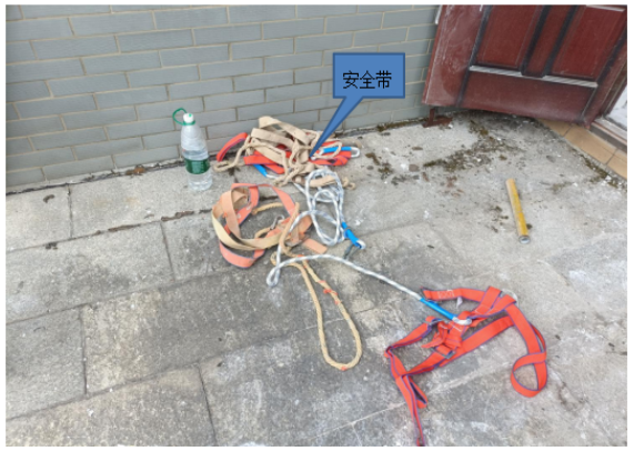 3.劳动保护用品配备情况。施工人员自行携带了安全帽、安全绳、工作服等必要的劳动防护用品;但是施工单位未安装防坠网、便于悬挂安全绳的钢丝绳等安全设施。