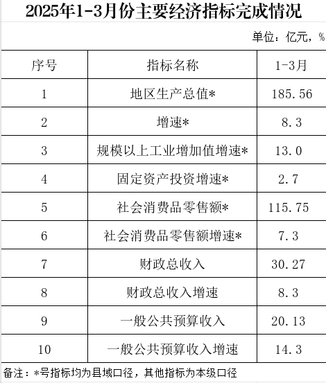 2025年1-3月份主要经济指标完成情况